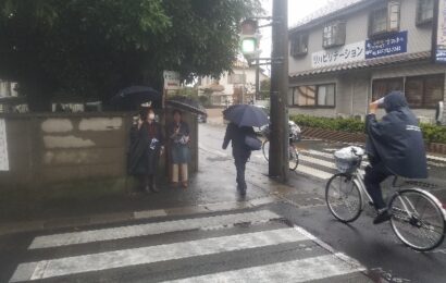 また見守り箇所全般に言えますが、当日は雨が降っていたのですが合羽を着用せずにずぶ濡れで、自転車に乗っている生徒が散見された。