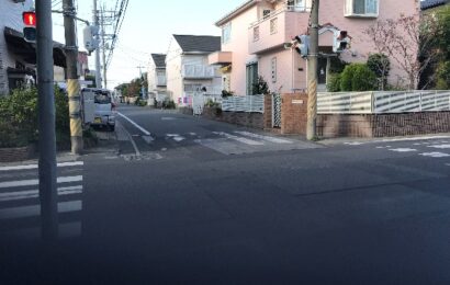 市川市営競技場からの下り坂、市川駅方面からの車道、じゅん菜池方面からの車道、成り升酒屋方面からの車道が交差する変形四叉路は、見通しが悪いので特に注意が必要と感じました。