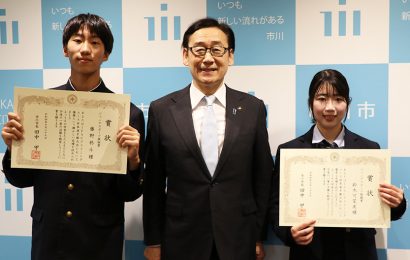 藤野柊斗さん、鈴木可菜美さんが市川市長を表敬訪問しました