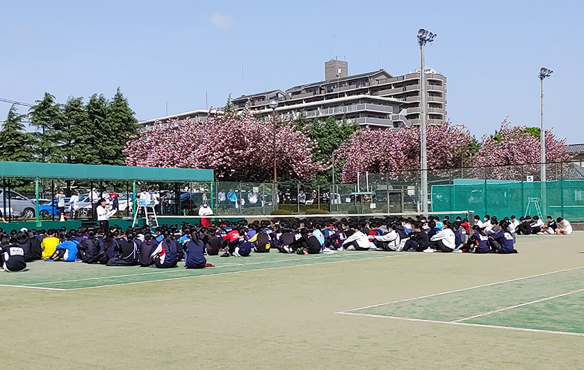 新年度最初の大会が始まりました。船橋法典高校の近くにある法典公園グラスポテニスコートが会場でした。