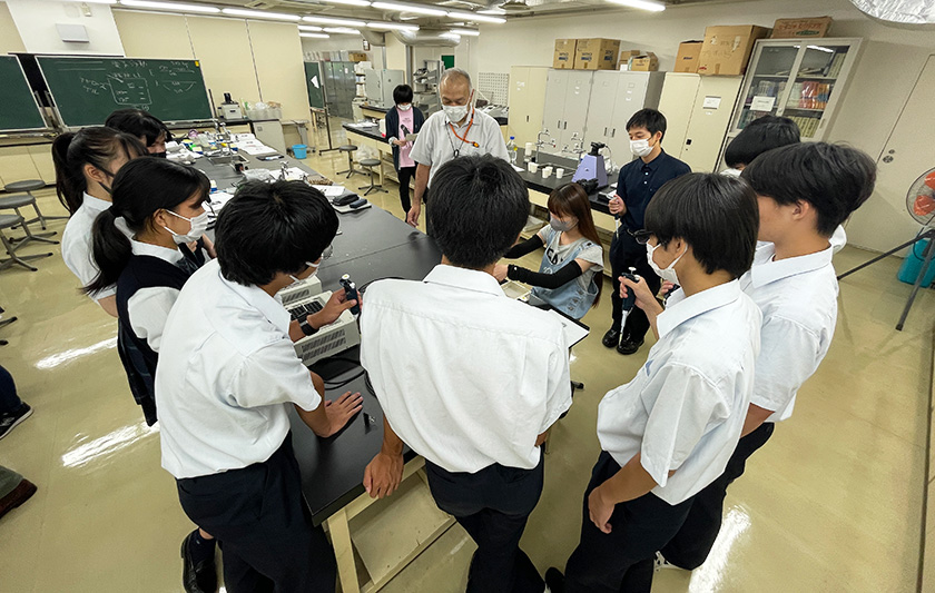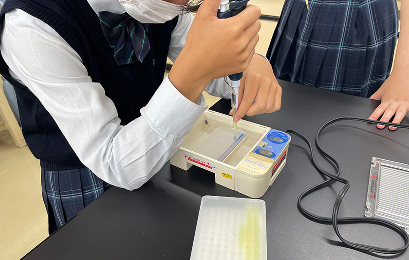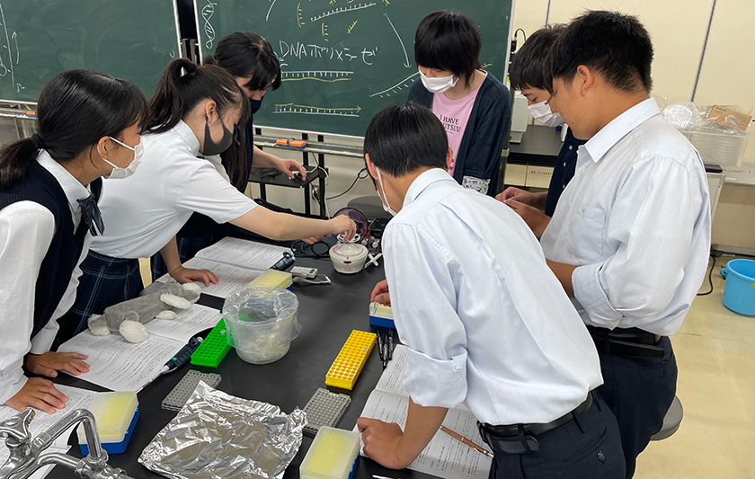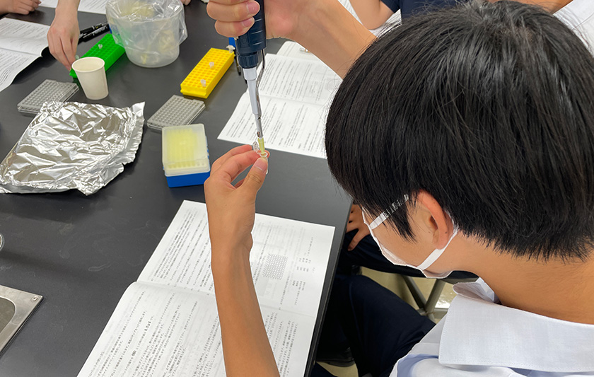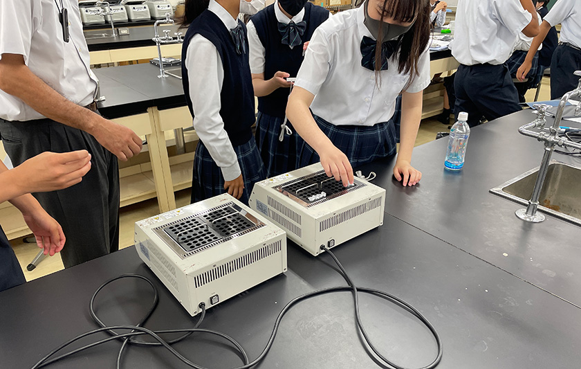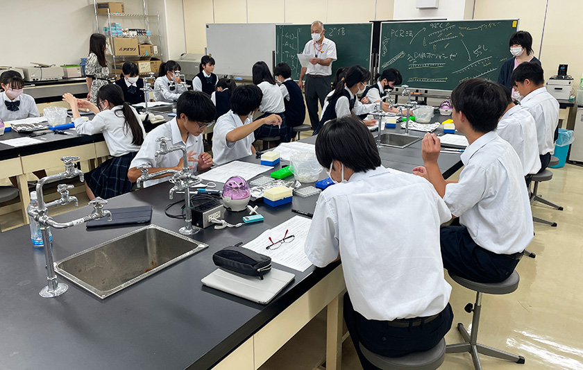 当日は現2年生理系の生物選択者と現1年生で来年度理系生物を希望する生徒が参加しました。また、本校の卒業生が実験のアシスタントを務めてくれました。
