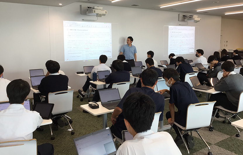 本校の数学科として、今年度から2年生を対象に『データサイエンス入門』という科目を実施しています。この科目では主にプログラミングと統計学の知識を学び、データ分析を行う基盤を養っていきます。
