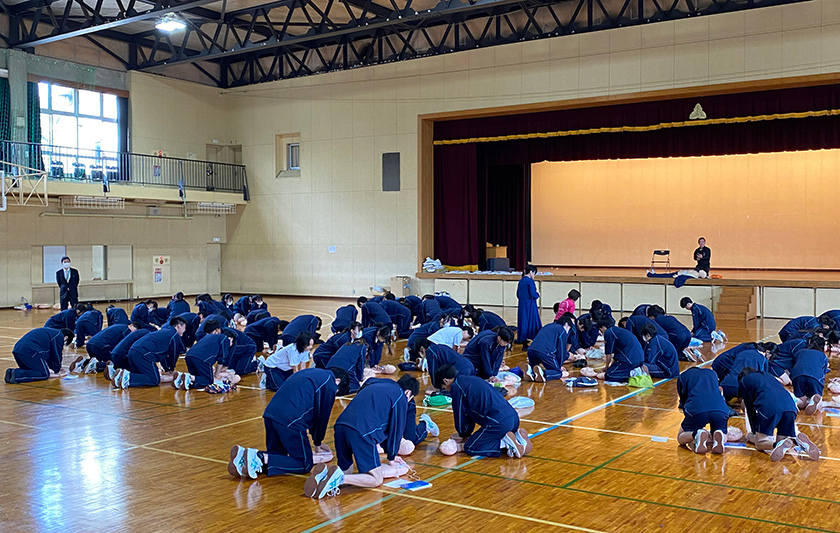 10月25日(水)、26日(木)、公益社団法人日本医学協会より講師をお招きして、救急蘇生法講習会を開催しました。より実践的な講習会とするため、3年生12クラスを4クラスずつ3グループに分けての実施となりました。