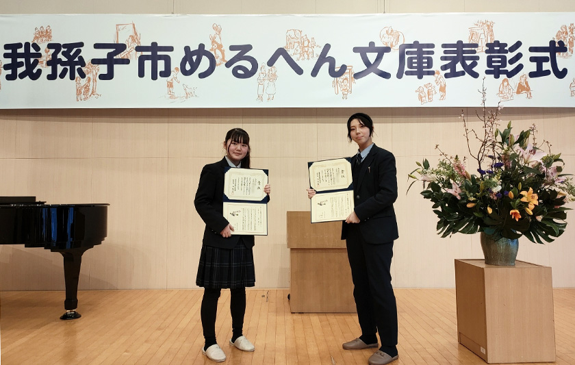 今年度の我孫子市めるへん文庫高校生部門で、1年生関根さん、3年生嶋田さんの2名が短編小説作品で入賞し、2月25日我孫子市で表彰式が行われました。