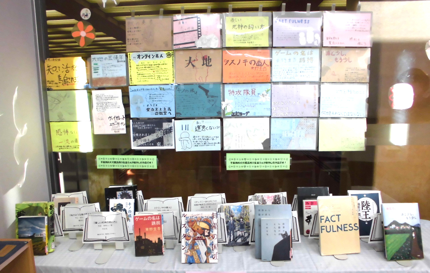 - POP作品とともに、本校図書委員会が推す本も一緒に展示していただいています。