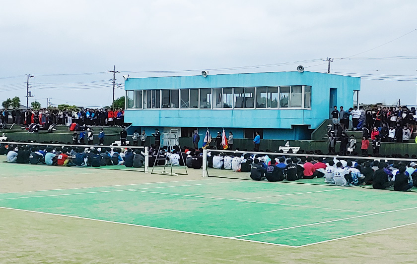 団体戦は雨の中、また風も強いコート状況でした。その中でも気持ちを一つにして最後まで粘り強く戦ってくれました。選手たちの成長を感じることができる一日でした。