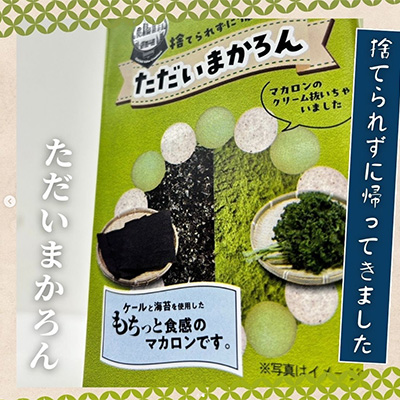 捨てられる予定であった「端材の海苔粉」と「ケール」を練り込んだマカロンです。