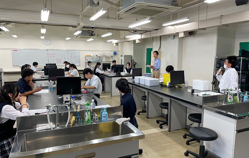 8月26日(月)に東邦大学理学部生物学科の高橋秀典准教授の協力を得て、東邦大学の実験室において高大連携実験講座を実施いたしました。当日は現2、3年生理系の生物選択者が参加しました。