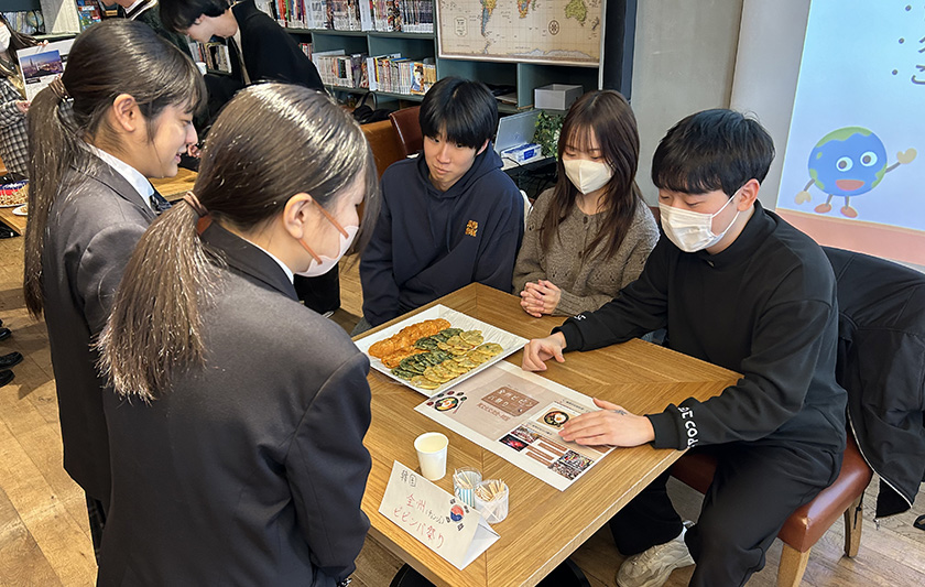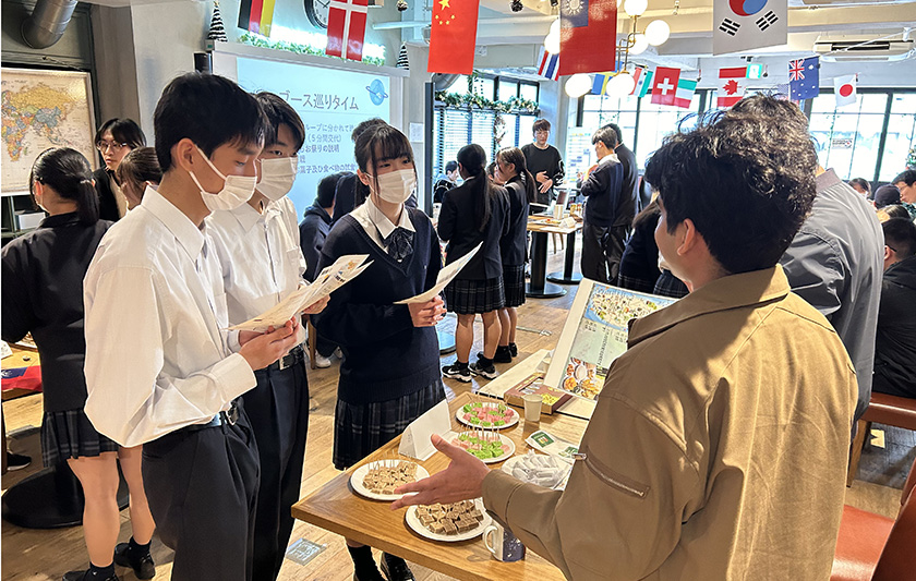 2024年12月18日(水)に実施されたイベントでは、千葉商科大学に7カ国から留学している学生が各国のブースを作り、それぞれの国のお祭りや食事を生徒に紹介してくれました。人生で初めて見る食べ物を楽しみながら異文化への理解を深める、貴重な体験となりました。