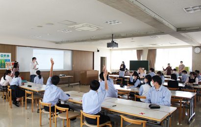 生徒は、中国出身の留学生たちの「中国の人口・結婚式・正月」など、日本とは異なる特有の文化についてのプレゼンテーションやクイズ、少人数でグループ交流を楽しみました。