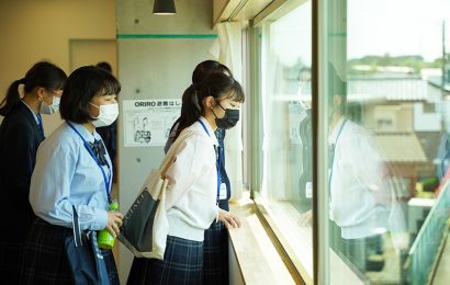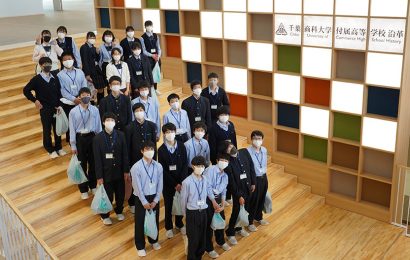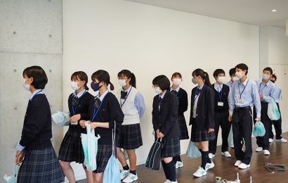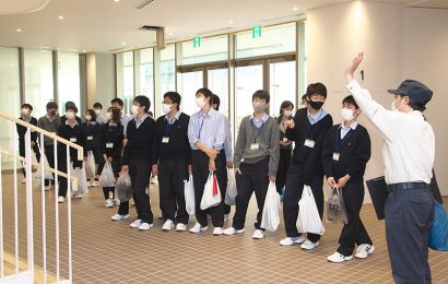 これまで2度、建築現場を見学してきた2年生、3年生と、15日から初参加の新1年生は、きれいに整備された新校舎との対面し、7月からの新校舎での学生生活に、期待で胸が高鳴ります。