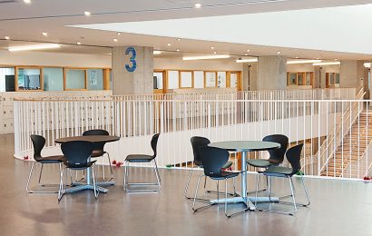 売店、家庭科室、保健室、理科室、PC室、多目的メディア室、アクティブラーニング室、美術室、音楽室、柔道場、職員室、駐輪場
