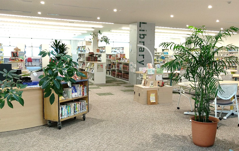 3万冊の蔵書、静かに落ち着いて読書ができる窓際座席のほか、図書委員会やグループ学習のためのワークスペース、生徒用PCやプリンター、座席指定制の「自習室」も備えています。